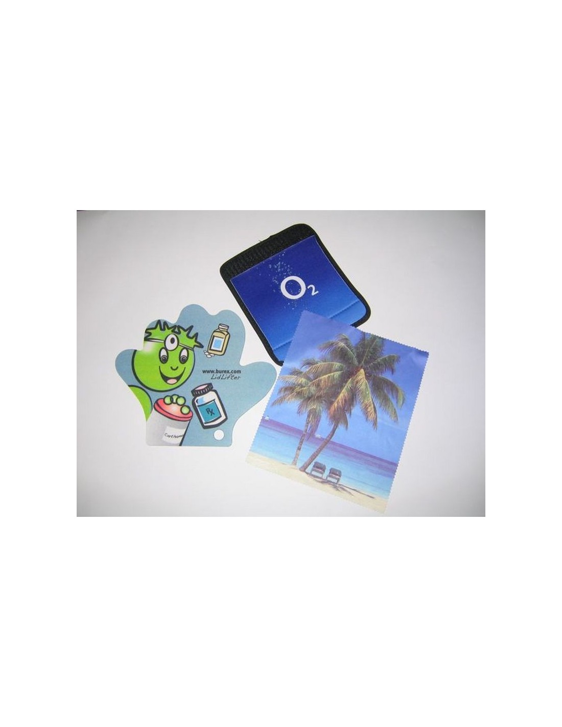 Impression haute définition par transfert sublimation à 200°C. Encre écologique à base d'eau.. Lavable en machine à 30°C. Épaisseur 1.5mm (poids 830gr/m²) ou 2.5mm (poids 1500gr/m²). Toutes formes et découpes possibles. Dimensions maximum 120c80cm. Minimum de commande 100 pces. BAT pré-série digital.